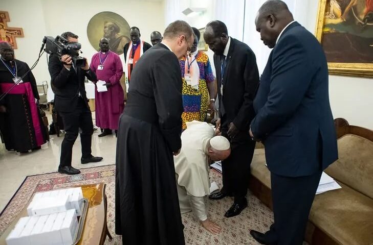 Vuestra presencia aquí hoy lleva mi corazón cerca de países a los que quiero de forma particular, como la República Centroafricana, donde estuve en 2015 para abrir la Puerta Santa, en Bangui; y Sudán del Sur donde, si Dios quiere iré a inicios del próximo año. Son países muy pobres y frágiles, que el mundo considera importantes solo por los recursos para explotar y que sin embargo el Señor considera sus predilectos, en los cuales os manda a ser buenos samaritanos, testigos de su Evangelio.