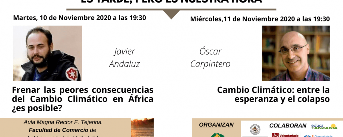 El martes 10 y el miércoles 11 de noviembre se celebran las X Jornadas Afroamericanas, organizadas por el Comité Umoya Valladolid y el Comité de Solidaridad con América Latina Óscar Romero. Este año el tema a tratar es el cambio climático, tal como recoge la portada de la Agenda Latinoamericana 2021: “es tarde, pero es nuestra hora”. Los ponentes invitados en esta ocasión son Javier Andaluz y Óscar Carpintero.