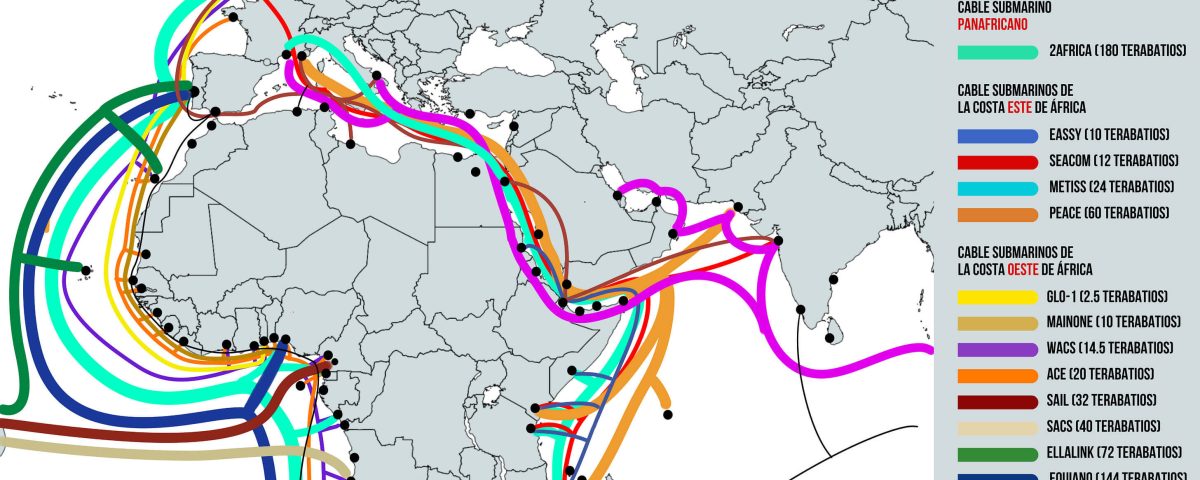 Más de 16 cables submarinos conectan al continente africano a internet. Algunos de los más potentes son Equiano o el cable panafricano, 2Africa.