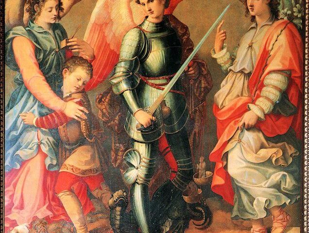 La tradición católica enumera tres arcángeles: Miguel, Gabriel y Rafael. Los tres se celebran cada año el 29 de septiembre, y se les denomina tradicionalmente «santos». Aunque los tres se mencionan en las Escrituras, Miguel es el único llamado «arcángel». Fue en el siglo VI cuando el papa y Doctor de la Iglesia san Gregorio Magno asoció los tres nombres y explicó el papel de los arcángeles. «Es necesario saber que la palabra ‘ángel’ designa su función: mensajero. Y los que anuncian los mayores acontecimientos se llaman ‘arcángeles'», escribió en sus Homilías sobre el Evangelio.