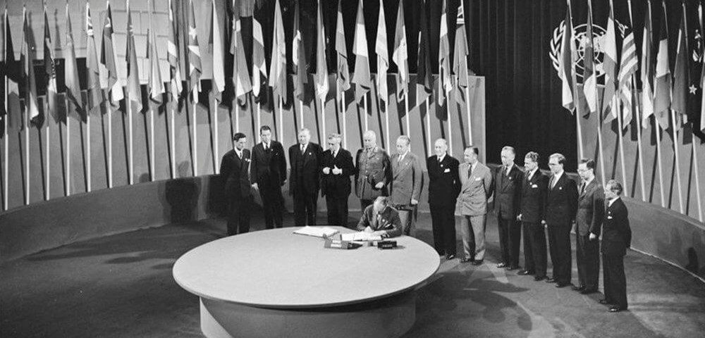 El 24 de octubre de 1945 en San Francisco, un primer grupo de países miembros dio vida a la Organización de las Naciones Unidas, ratificando el documento fundacional de la Organización, la Carta de la ONU.