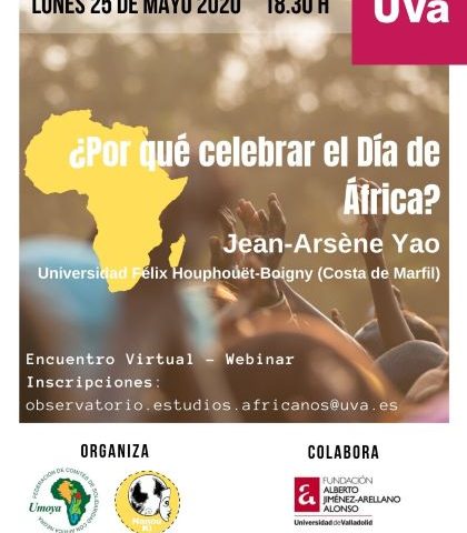 El Observatorio de Estudios Africanos de la Universidad de Valladolid celebrará el próximo día 25 de mayo el Día de África con un encuentro virtual-webinar, a partir de las 18,30 horas, con el profesor de la Universidad de Costa de Marfil Jean-Arsène Yao bajo el título ¿Por qué celebrar el Día de África?.