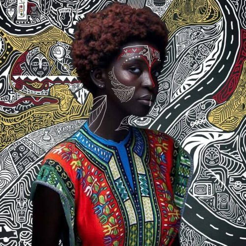 Respuesta. Mis composiciones celebran la belleza negra y su objetivo es contar las historias y experiencias de nuestra comunidad que no han sido contadas mediante la representación de los diferentes cortes de pelo, prendas tradicionales y rasgos naturales de los sujetos. Mi trabajo también alterna motivos, colores y formas culturales tradicionales presentes en África que realzan el mensaje de fuerza transmitido por las personas representadas.