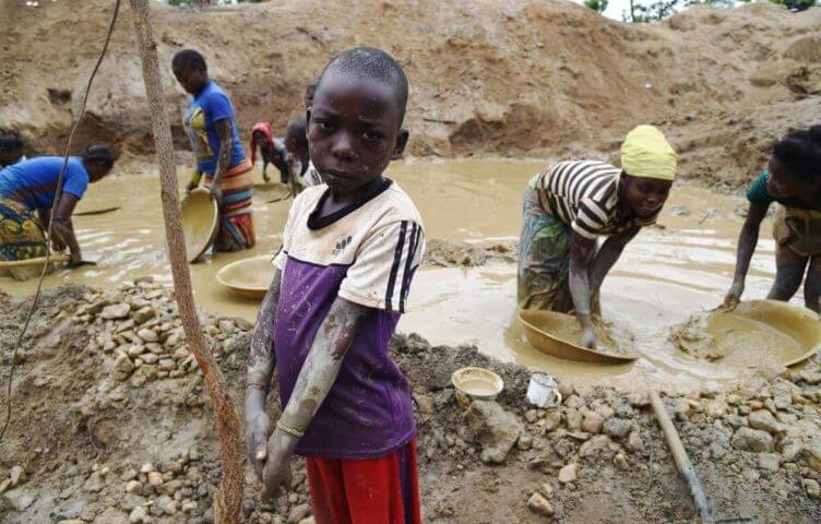 La riqueza mineral (oro y coltán) del país es objeto constante de violencia, ya que los señores de la guerra luchan por su control como medio de enriquecerse y seguir financiando el conflicto. La población es esclavizada para trabajar en las minas. Los niños también.
