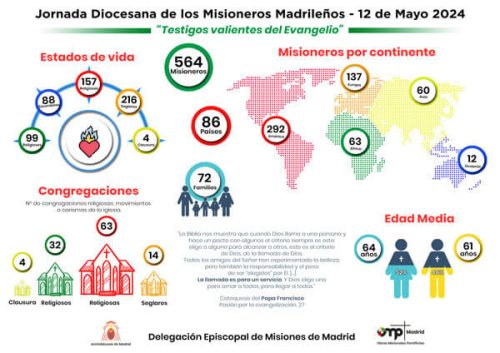El próximo 12 de mayo, solemnidad de la Ascensión del Señor celebramos en nuestra diócesis la Jornada del Misionero, bajo el lema “Testigos valientes del Evangelio”. Son 564 misioneros, nuestros madrileños que dejaron todo por llevar el anuncio del evangelio donde la Iglesia les envió, siguiendo la llamada del Señor de ir por todo el mundo y predicar el evangelio.