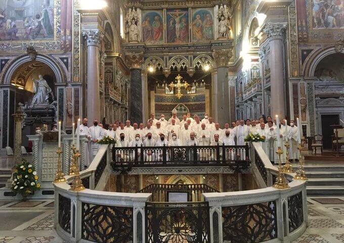 A primera hora del día, en la Catedral de Roma, basílica de san Juan de Letrán, Mons. Juan Antonio Aznárez Cobo se reunían todos los Obispos del cuarto grupo para celebrar la Eucaristía en este día en que se celebra la conversión de san Pablo. Se nos recordaba cómo san Pablo quedando ciego se dejó guiar y recuperando la vista supo anunciar a todos el Evangelio. Debemos sentir ese amor de Cristo en nuestras vidas, sentirlo, transmitirlo.