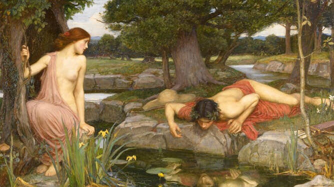 Narciso es un personaje de la mitología griega. Era tan hermoso que se enamoró de sí mismo al verse reflejado en el agua, lo que provocó su muerte. De este mito deriva el concepto moderno de narcisismo.
