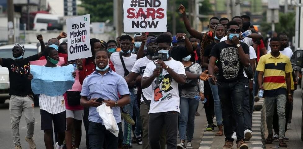Las manifestaciones anti SARS (Special Anti Robery Squad, Brigada Especial Anti Robos), a la que se acusa de extorsionar, intimidar y asesinar, comenzaron el 7 de octubre. El día 11 el Inspector General de la Policía Mohammed Adamu, anunció la disolución de la SARS. A los manifestantes les pareció insuficiente. Piden ahora la reforma del conjunto de la policía nigeriana y que los miembros de la SARS sean juzgados. (Un informe de Amnistía Internacional del mes de junio señalaba 82 casos documentados de tortura, maltrato y ejecuciones extrajudiciales. Ningún miembro del SARS ha sido juzgado hasta ahora a pesar de que Nigeria aprobó en 2017 una ley contra la tortura). El 20 de octubre, las fuerzas de seguridad dispararon sin previo aviso contra un grupo de manifestantes que llevaban varios días acampados en Lekki (Lagos), a la entrada de la autopista. El Vicepresidente nigeriano Yemi Osinbajo reconoció al día siguiente la muerte de 12 personas. “Los soldados mataron intencionadamente”, declaró Osai Ojigho, director de Amnistía Internacional (AI) Nigeria. Según AI, antes de disparar, la policía había desactivado las cámaras de seguridad y cortado la electricidad. Los militares negaron su participación en los hechos, pero echaron más leña al fuego calificándolos de “fakenews”. Y las manifestaciones se hicieron violentas. La muchedumbre quemó la casa del gobernador de Lagos, Babajide Sanwo-Olu y la sede de un periódico relacionado con Bola Tinubu, miembro importante del All Progressives Congress, partido en el poder, y probable candidato para las presidenciales de 2023. Centros comerciales han sido saqueados, varios edificios quemados y algunas cárceles atacadas. En Bukuru, a 20km de Jos, capital administrativa del estado de Plateau, han sido saqueados los depósitos de alimentos que se iban a distribuir durante el confinamiento decretado para controlar el Covid-19. El presidente Muhammadu Buhari declaró el viernes 23 de octubre que 69 personas, entre ellos 11 policías y 7 militares, habían fallecido durante las manifestaciones. Buhari apeló a que terminaran las protestas y que los manifestantes ayudaran al gobierno “a buscar soluciones”. Ese mismo día, varios grupos que habían participado en las manifestaciones pidieron a la gente que se quedara en sus casas. También la “Feminist Coalition” pidió a sus seguidores que respetaran los toques de queda, y anunció que ya no recogería donativos para las “#EndSARS Protests”. El sábado 24, Mohammed Adamu, aduciendo que los criminales se habían adueñado de las manifestaciones, ordenó que la policía actuara para terminar con “la violencia, saqueos y matanzas”. El futuro es incierto.